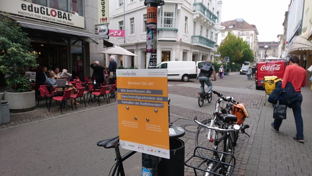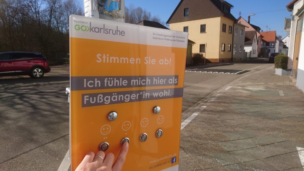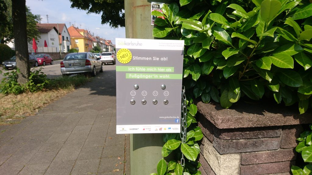 Um die Wahrnehmung der zu Fuß Gehenden hinsichtlich verschiedener Verkehrssituationen einfangen zu können, wurden als innovatives digitales Partizipationsinstrument interaktive Poster entwickelt.
